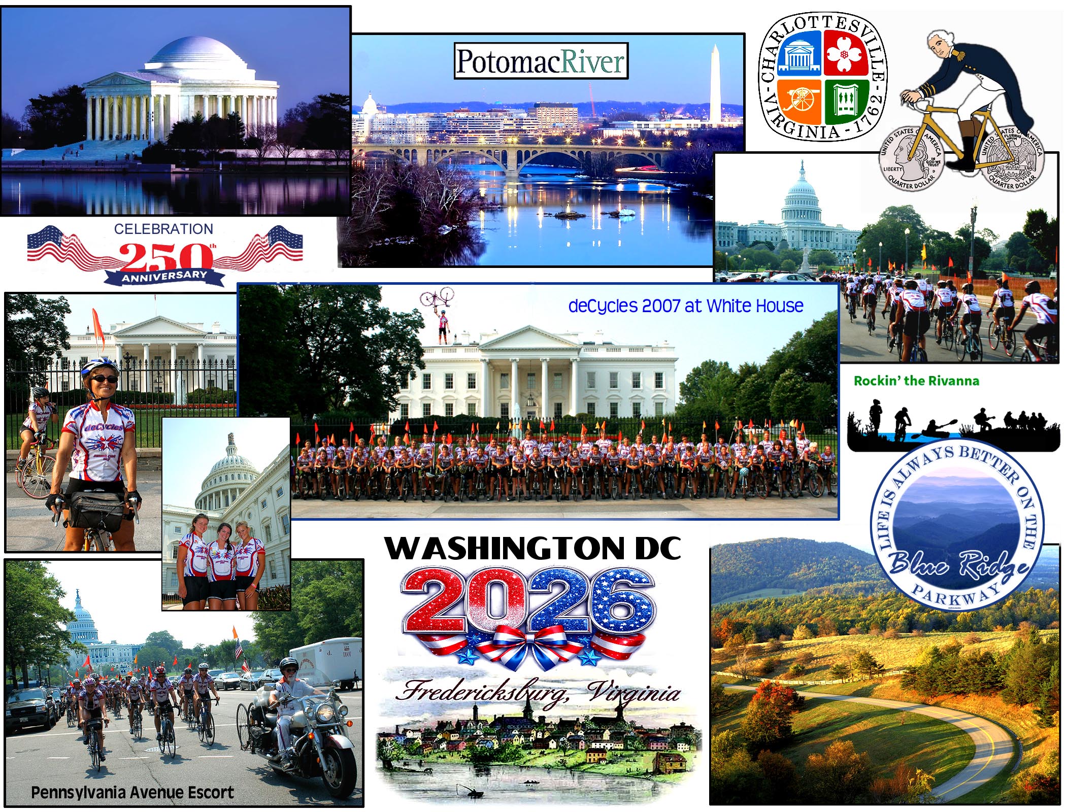 Optional Excursions: New River Rafting - Thomas Jefferson Monticello - Mount Vernon tours (cost TBA). The cost of optional excursions is the rider’s responsibility. The deCycles will hold fundraising events and car washes for riders to earn money to pay for their trip and excursions. Many riders have launched GoFundMe donation requests to cover their costs. If you really want to go, don’t let money hold you back. There are plenty of ways to obtain donations and raise funds.